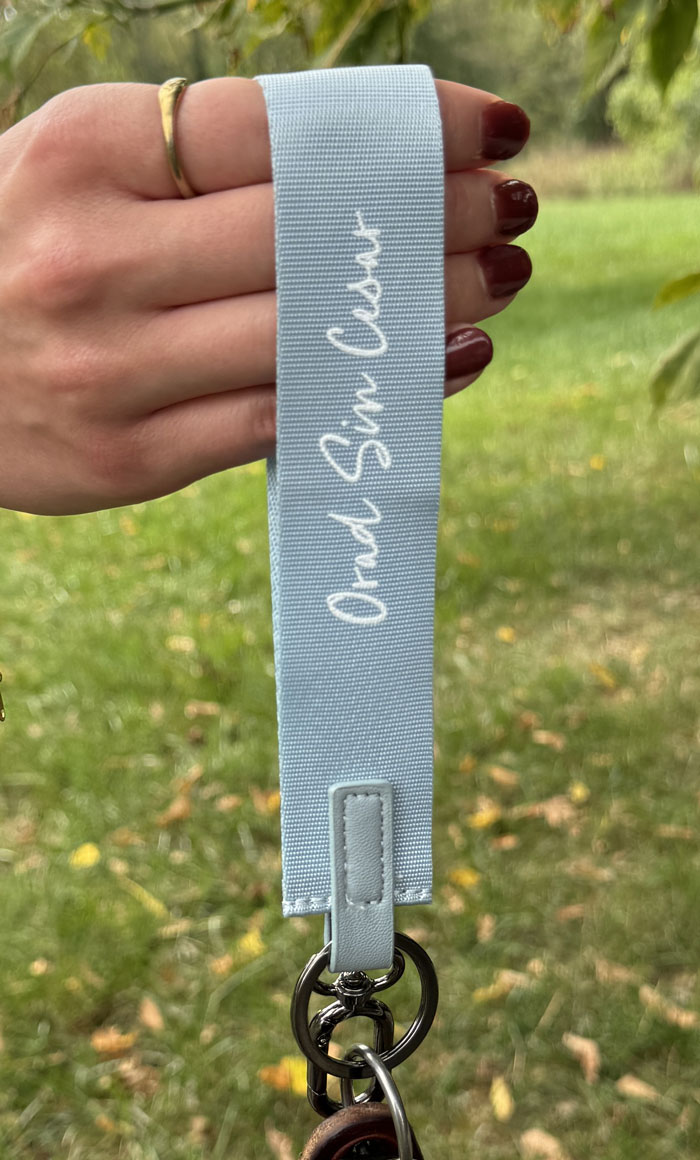 Mantén tus llaves cerca y más aún tu fe. Este llavero ligero y resistente, en un relajante color azul cielo, presenta una impresión monocromática centrada con la frase «Orad sin cesar».